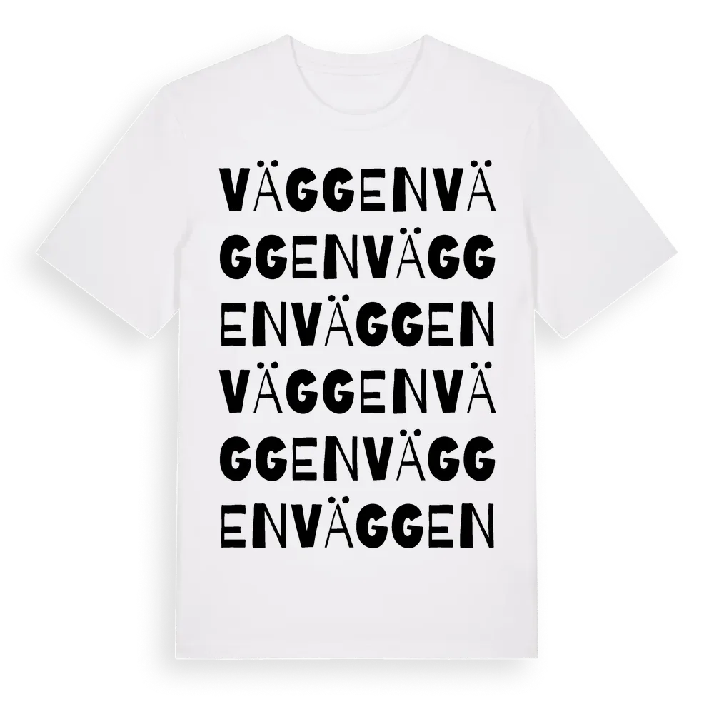 En ordlek byggd på Väggens namn. Subtilt och klurig – ett motiv som bara de som verkligen känner platsen fullt ut förstår. Premium bomull, unisex – från Väggen i Södermanlands län.