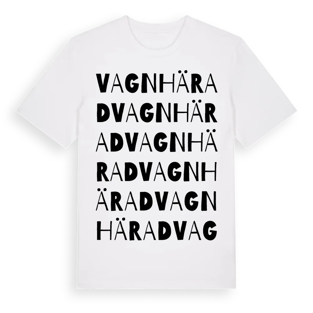 Vagnhärad ordlek t-shirt är inspirerad av byn Vagnhärad i Södermanlands län, Sverige. Tröjan är designad för dig som har en speciell koppling till platsen – oavsett om du bor här, har rötterna här eller bara älskar Vagnhärad.