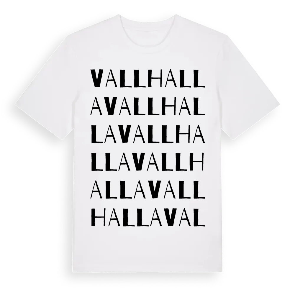 En ordlek byggd på Vallhallas namn. Subtilt och klurig – ett motiv som bara de som verkligen känner platsen fullt ut förstår. Premium bomull, unisex – från Vallhalla i Södermanlands län.