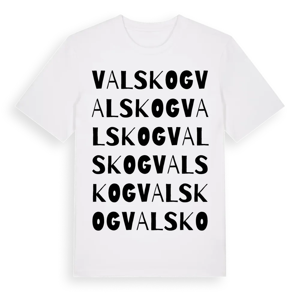 Valskog ordlek t-shirt är inspirerad av Valskog i Södermanlands län, Sverige. Tröjan är designad för dig som har en speciell koppling till platsen – oavsett om du bor här, har rötterna här eller bara älskar Valskog.