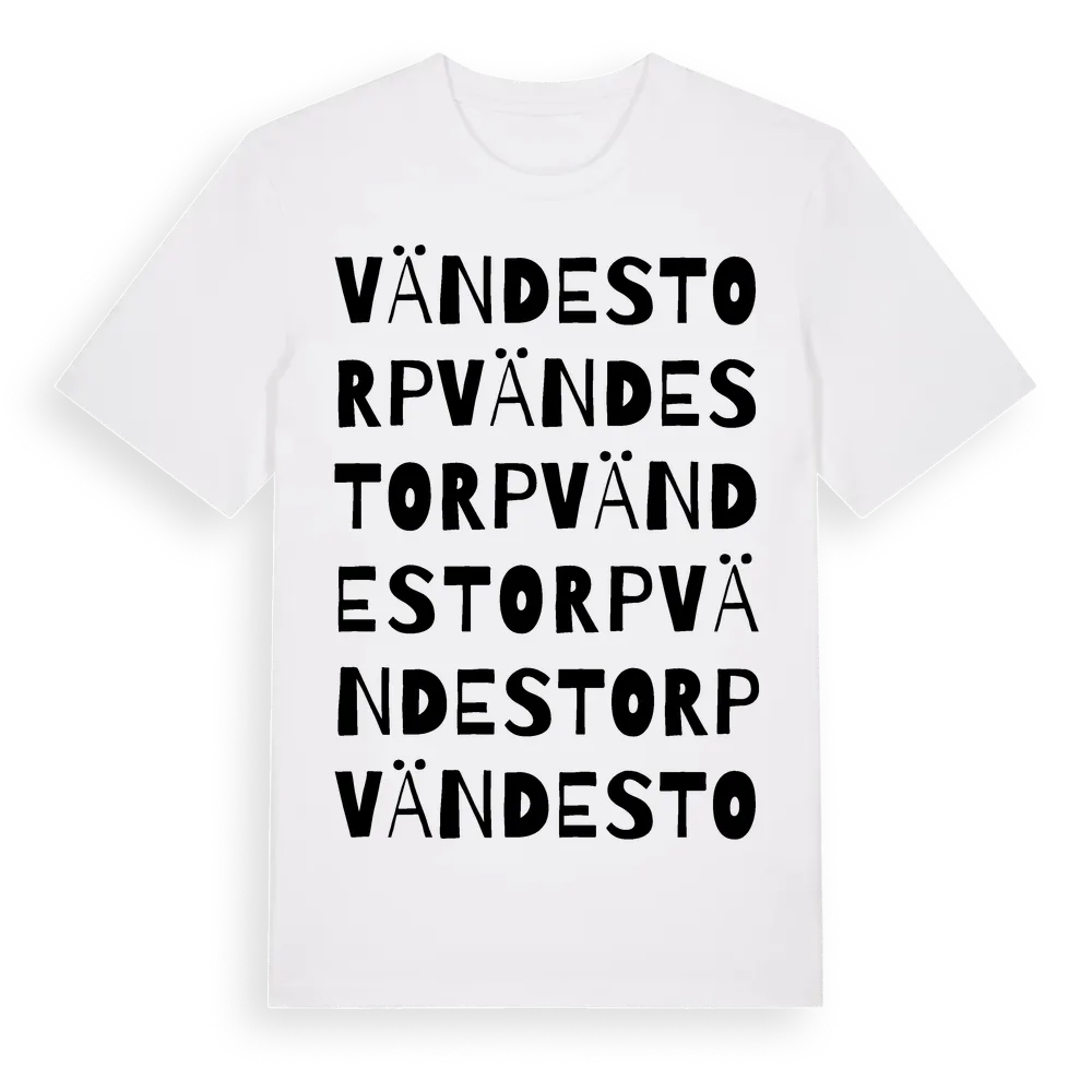 Vändestorp ordlek t-shirt är inspirerad av Vändestorp i Södermanlands län, Sverige. Tröjan är designad för dig som har en speciell koppling till platsen – oavsett om du bor här, har rötterna här eller bara älskar Vändestorp.