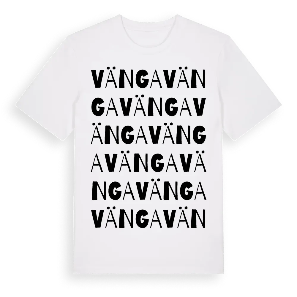 Vänga ordlek t-shirt är inspirerad av Vänga i Södermanlands län, Sverige. Tröjan är designad för dig som har en speciell koppling till platsen – oavsett om du bor här, har rötterna här eller bara älskar Vänga.