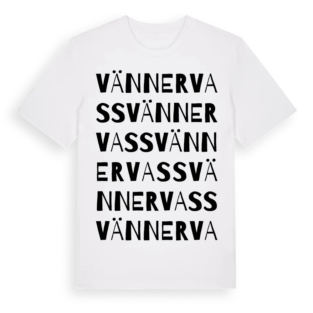 Vännervass ordlek t-shirt är inspirerad av byn Vännervass i Södermanlands län, Sverige. Tröjan är designad för dig som har en speciell koppling till platsen – oavsett om du bor här, har rötterna här eller bara älskar Vännervass.