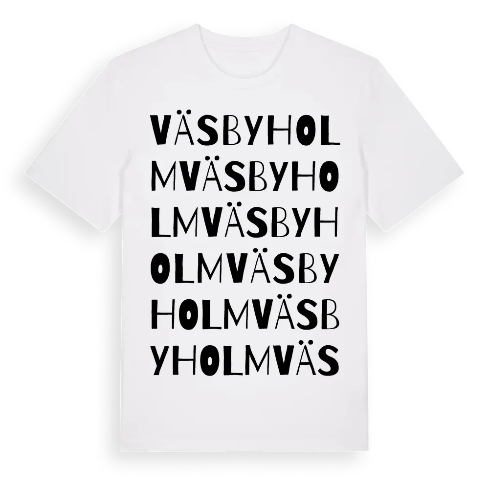 Väsbyholm ordlek t-shirt är inspirerad av stadsdelen Väsbyholm i Södermanlands län, Sverige. Tröjan är designad för dig som har en speciell koppling till platsen – oavsett om du bor här, har rötterna här eller bara älskar Väsbyholm.