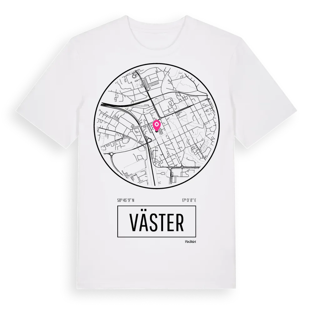 Väster t-shirt är inspirerad av stadsdelen Väster i Södermanlands län, Sverige. Tröjan är designad för dig som har en speciell koppling till platsen – oavsett om du bor här, har rötterna här eller bara älskar Väster.
