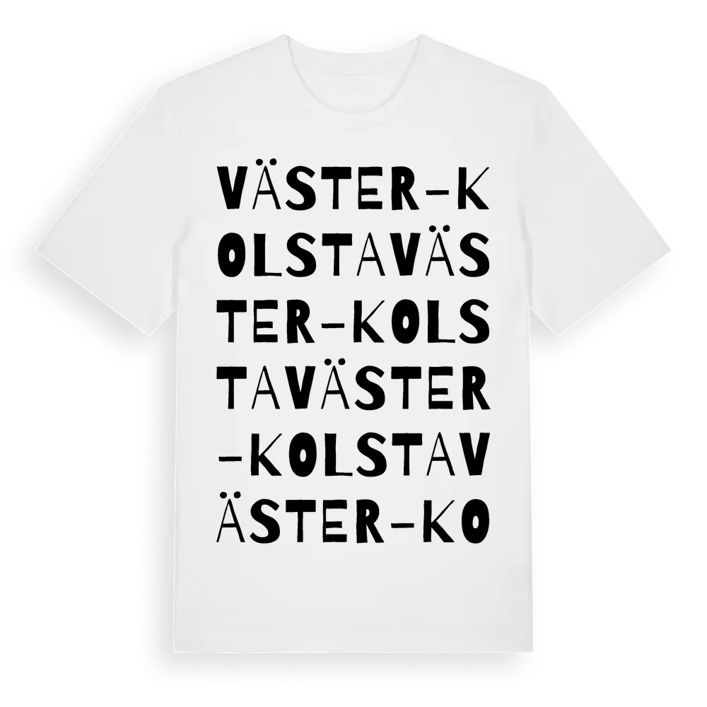 Väster-Kolsta ordlek t-shirt är inspirerad av Väster-Kolsta i Södermanlands län, Sverige. Tröjan är designad för dig som har en speciell koppling till platsen – oavsett om du bor här, har rötterna här eller bara älskar Väster-Kolsta.