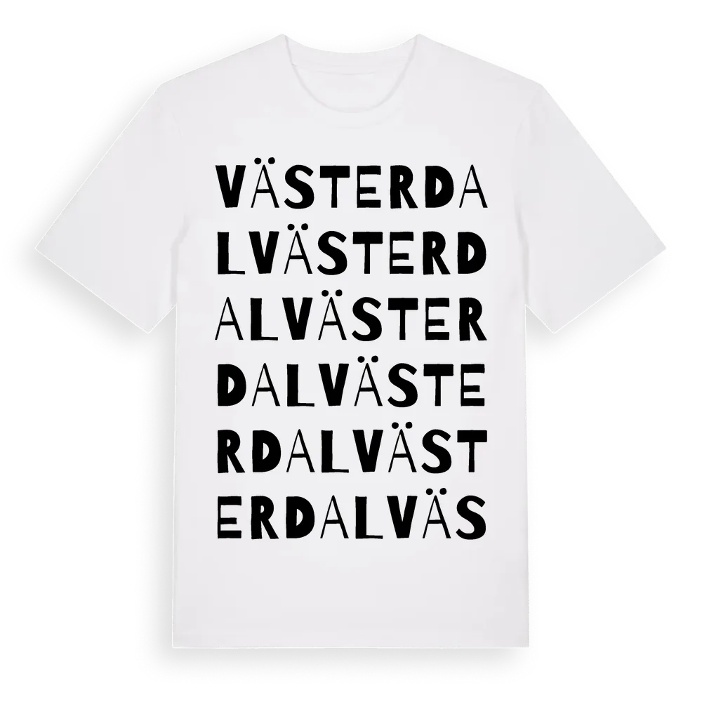 Västerdal ordlek t-shirt är inspirerad av Västerdal i Södermanlands län, Sverige. Tröjan är designad för dig som har en speciell koppling till platsen – oavsett om du bor här, har rötterna här eller bara älskar Västerdal.