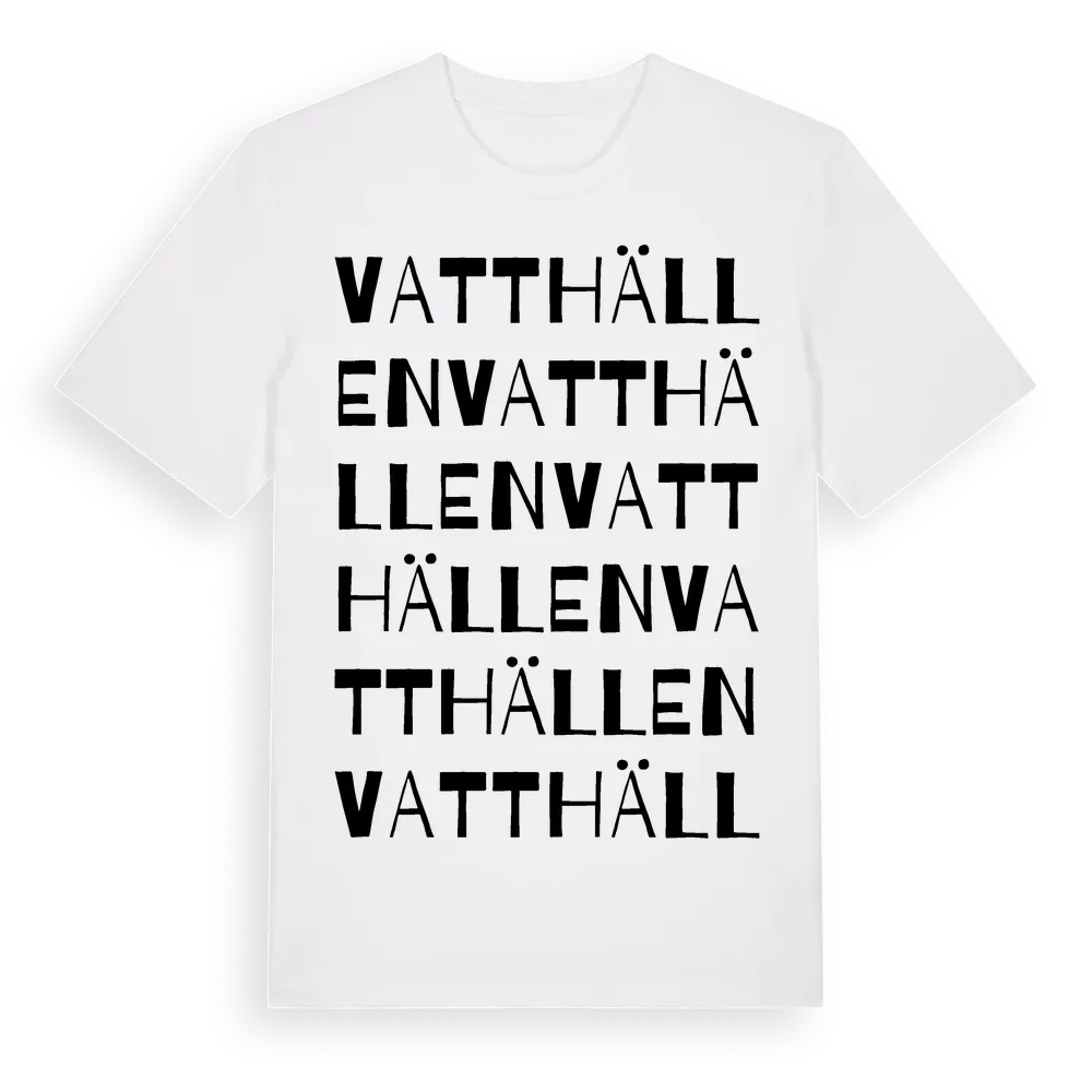 Vatthällen ordlek t-shirt är inspirerad av Vatthällen i Södermanlands län, Sverige. Tröjan är designad för dig som har en speciell koppling till platsen – oavsett om du bor här, har rötterna här eller bara älskar Vatthällen.