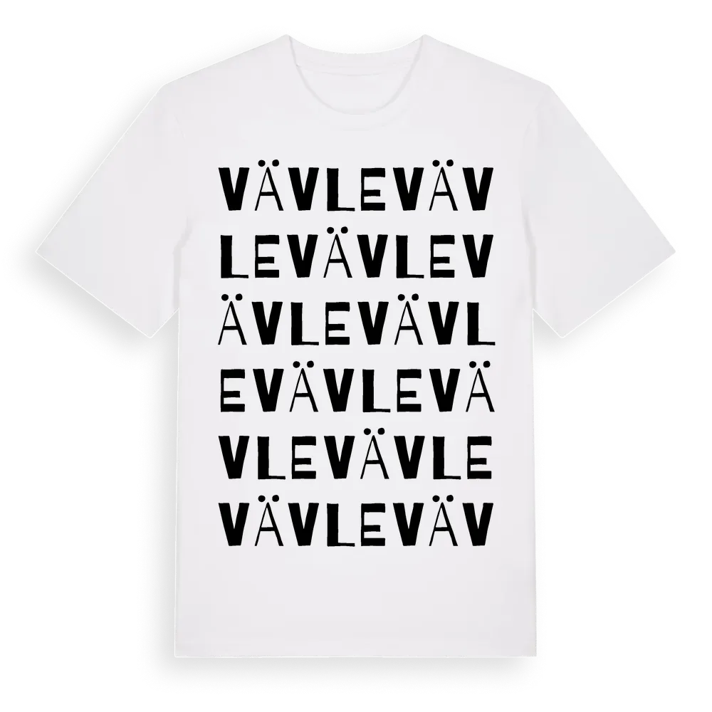 Vävle ordlek t-shirt är inspirerad av byn Vävle i Södermanlands län, Sverige. Tröjan är designad för dig som har en speciell koppling till platsen – oavsett om du bor här, har rötterna här eller bara älskar Vävle.