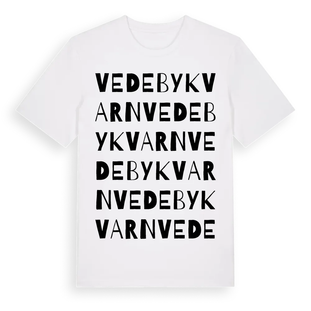 Vedebykvarn ordlek t-shirt är inspirerad av Vedebykvarn i Södermanlands län, Sverige. Tröjan är designad för dig som har en speciell koppling till platsen – oavsett om du bor här, har rötterna här eller bara älskar Vedebykvarn.