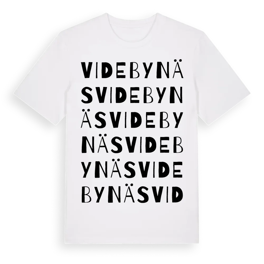 Videbynäs ordlek t-shirt är inspirerad av Videbynäs i Södermanlands län, Sverige. Tröjan är designad för dig som har en speciell koppling till platsen – oavsett om du bor här, har rötterna här eller bara älskar Videbynäs.