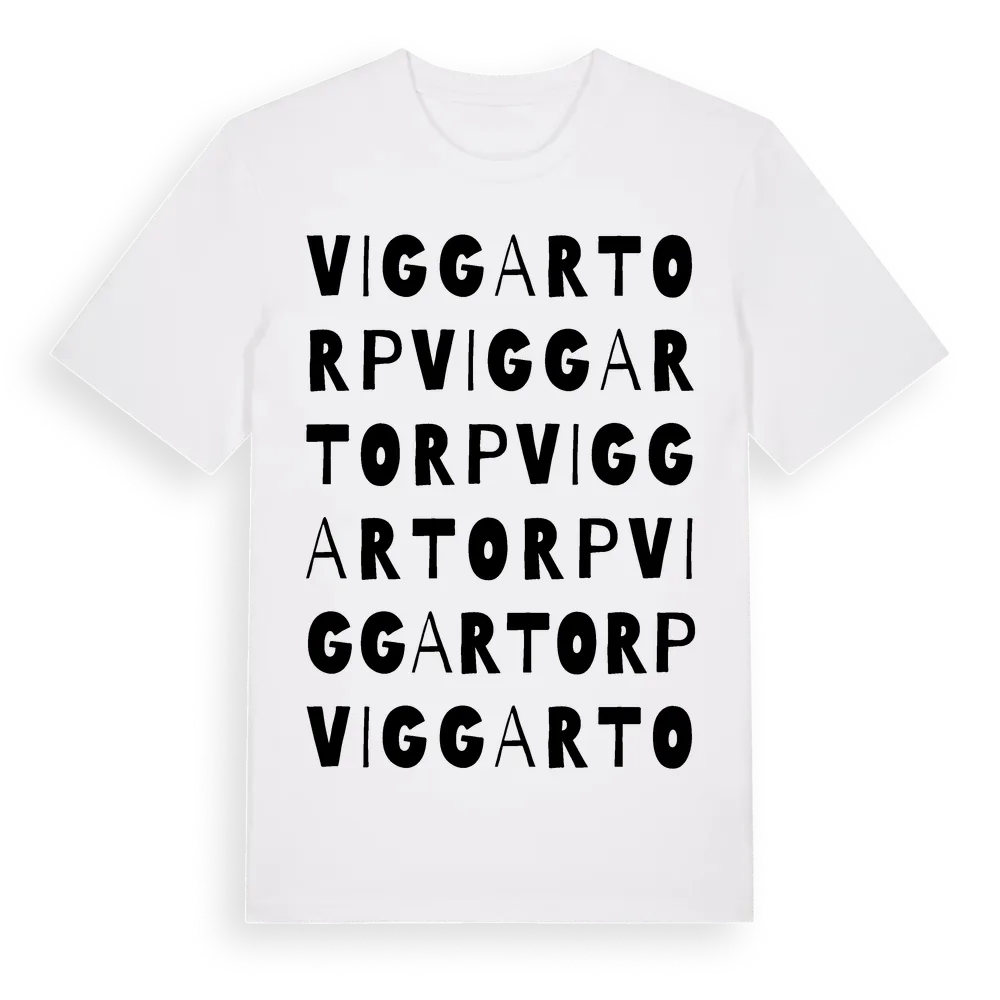 Viggartorp ordlek t-shirt är inspirerad av Viggartorp i Södermanlands län, Sverige. Tröjan är designad för dig som har en speciell koppling till platsen – oavsett om du bor här, har rötterna här eller bara älskar Viggartorp.