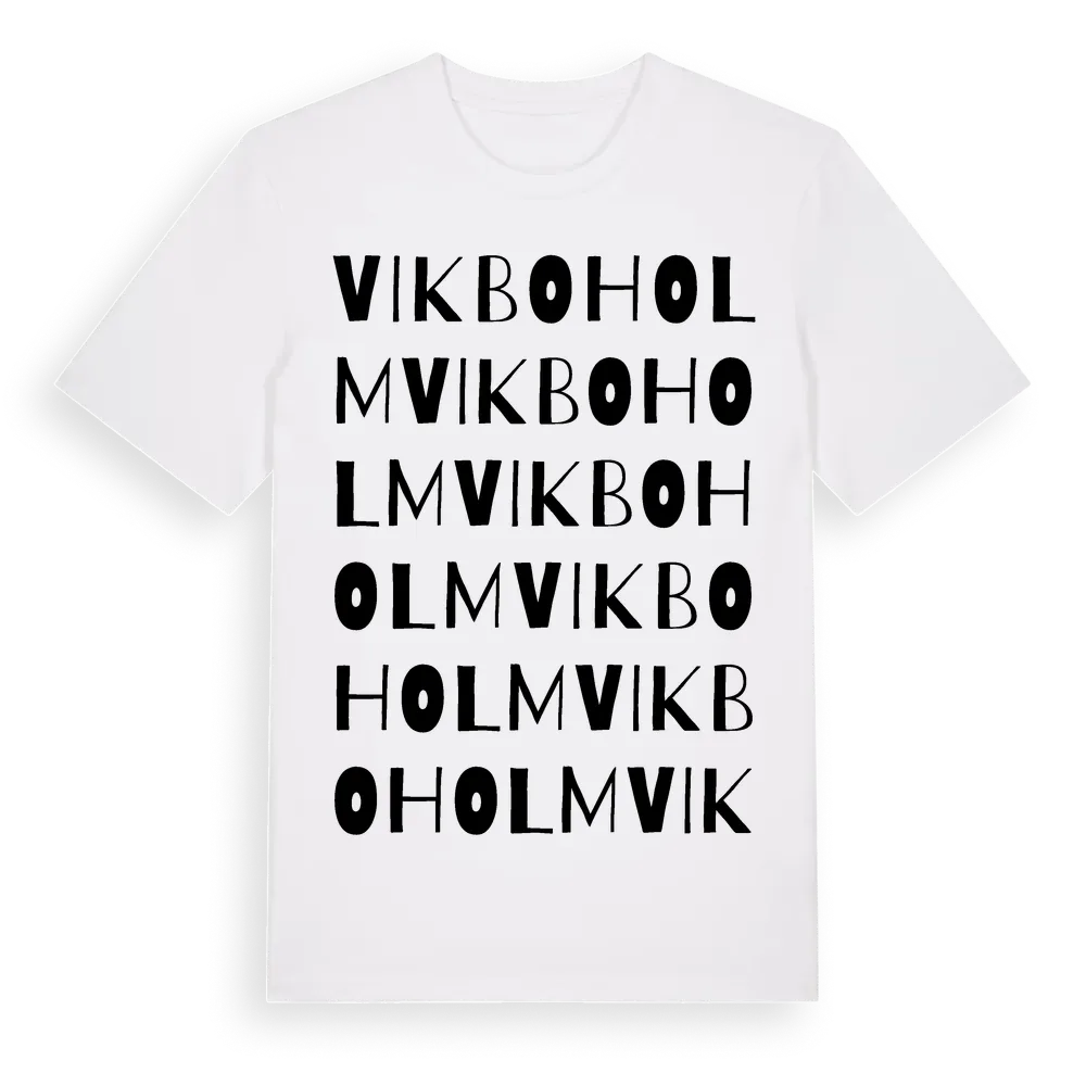Vikboholm ordlek t-shirt är inspirerad av Vikboholm i Södermanlands län, Sverige. Tröjan är designad för dig som har en speciell koppling till platsen – oavsett om du bor här, har rötterna här eller bara älskar Vikboholm.