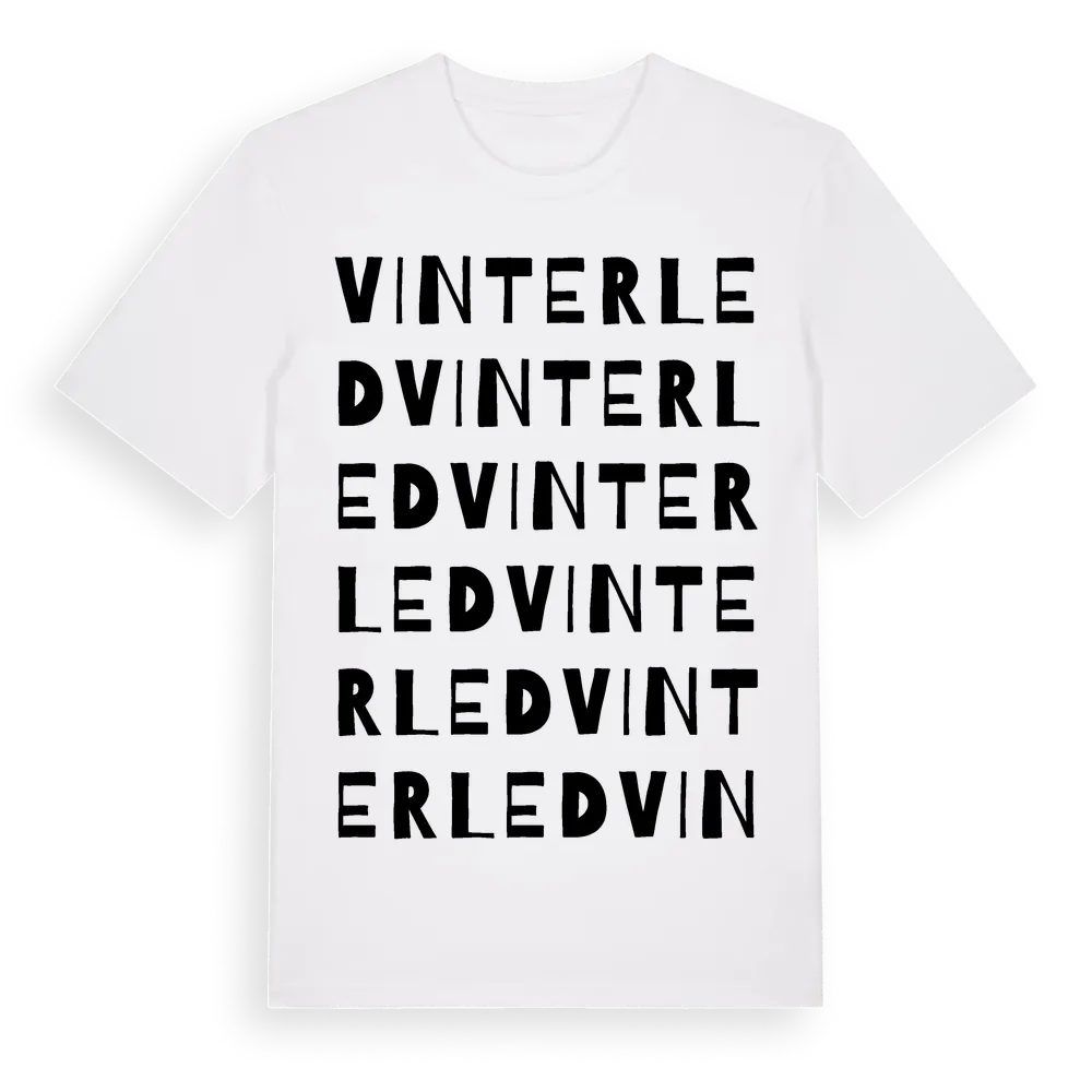 Vinterled ordlek t-shirt är inspirerad av Vinterled i Södermanlands län, Sverige. Tröjan är designad för dig som har en speciell koppling till platsen – oavsett om du bor här, har rötterna här eller bara älskar Vinterled.