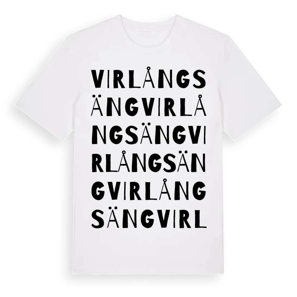 Virlångsäng ordlek t-shirt är inspirerad av Virlångsäng i Södermanlands län, Sverige. Tröjan är designad för dig som har en speciell koppling till platsen – oavsett om du bor här, har rötterna här eller bara älskar Virlångsäng.