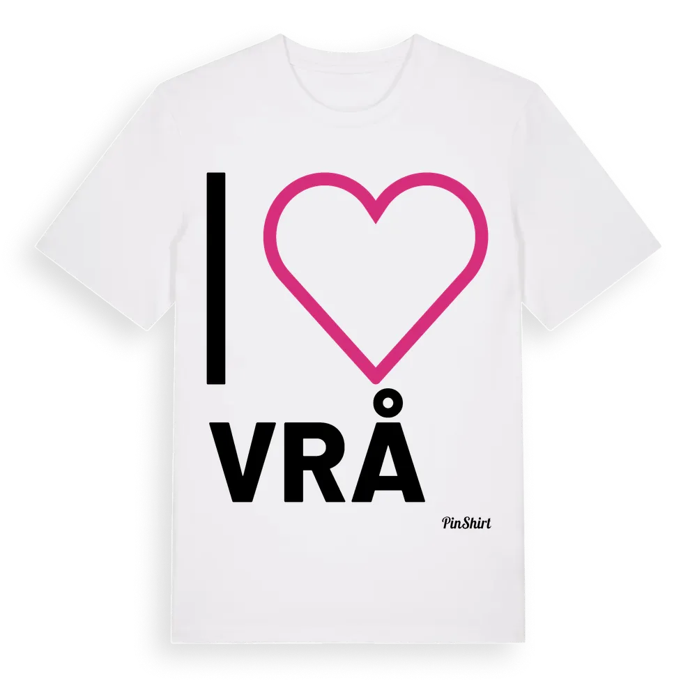 Det klassiska "I ❤ Vrå"-motivet i stort format som täcker hela bröstet. För dig som vill visa kärleken till Vrå på riktigt. Premium bomull, unisex – från Vrå i Södermanlands län.