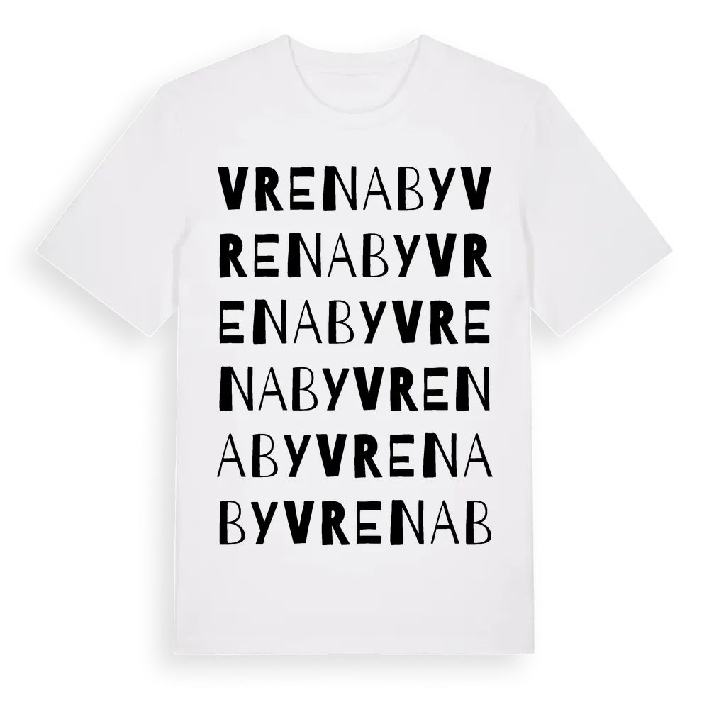 Vrenaby ordlek t-shirt är inspirerad av byn Vrenaby i Södermanlands län, Sverige. Tröjan är designad för dig som har en speciell koppling till platsen – oavsett om du bor här, har rötterna här eller bara älskar Vrenaby.
