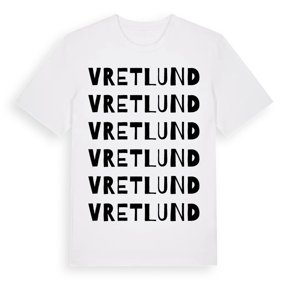Vretlund ordlek t-shirt är inspirerad av Vretlund i Södermanlands län, Sverige. Tröjan är designad för dig som har en speciell koppling till platsen – oavsett om du bor här, har rötterna här eller bara älskar Vretlund.