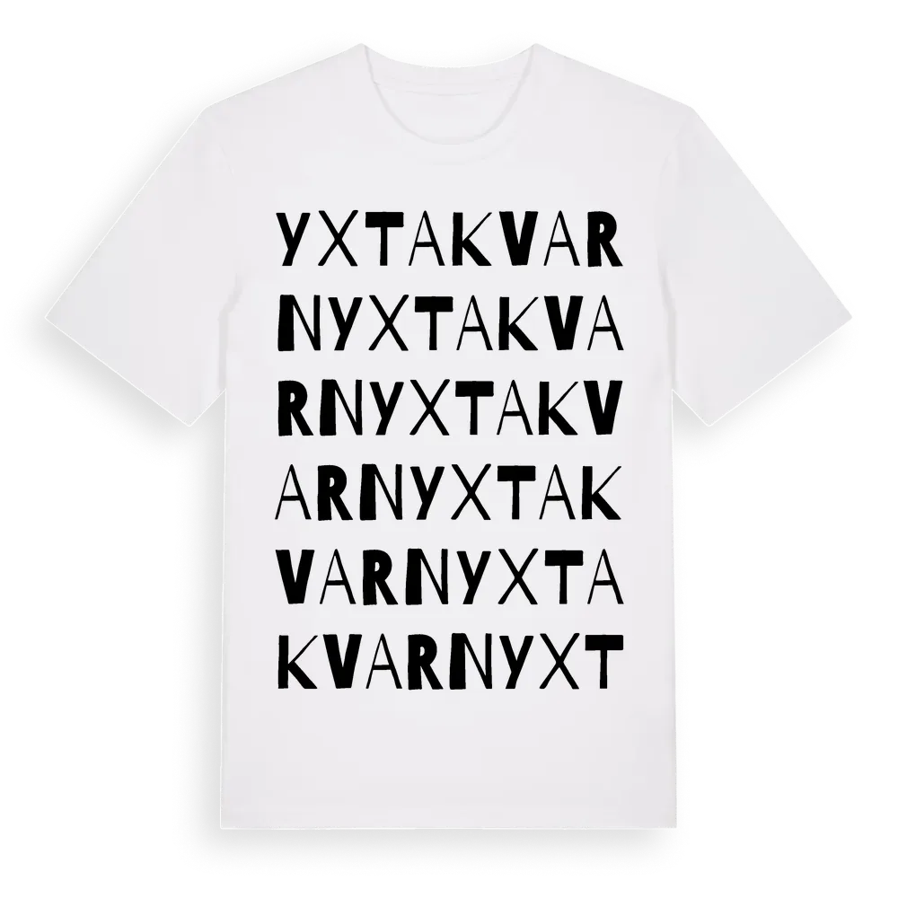 Yxtakvarn ordlek t-shirt är inspirerad av byn Yxtakvarn i Södermanlands län, Sverige. Tröjan är designad för dig som har en speciell koppling till platsen – oavsett om du bor här, har rötterna här eller bara älskar Yxtakvarn.
