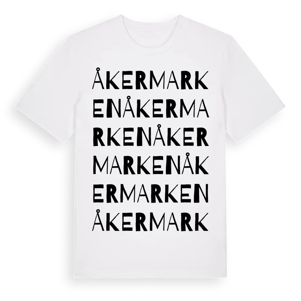 Åkermarken ordlek t-shirt är inspirerad av Åkermarken i Stockholms län, Sverige. Tröjan är designad för dig som har en speciell koppling till platsen – oavsett om du bor här, har rötterna här eller bara älskar Åkermarken.