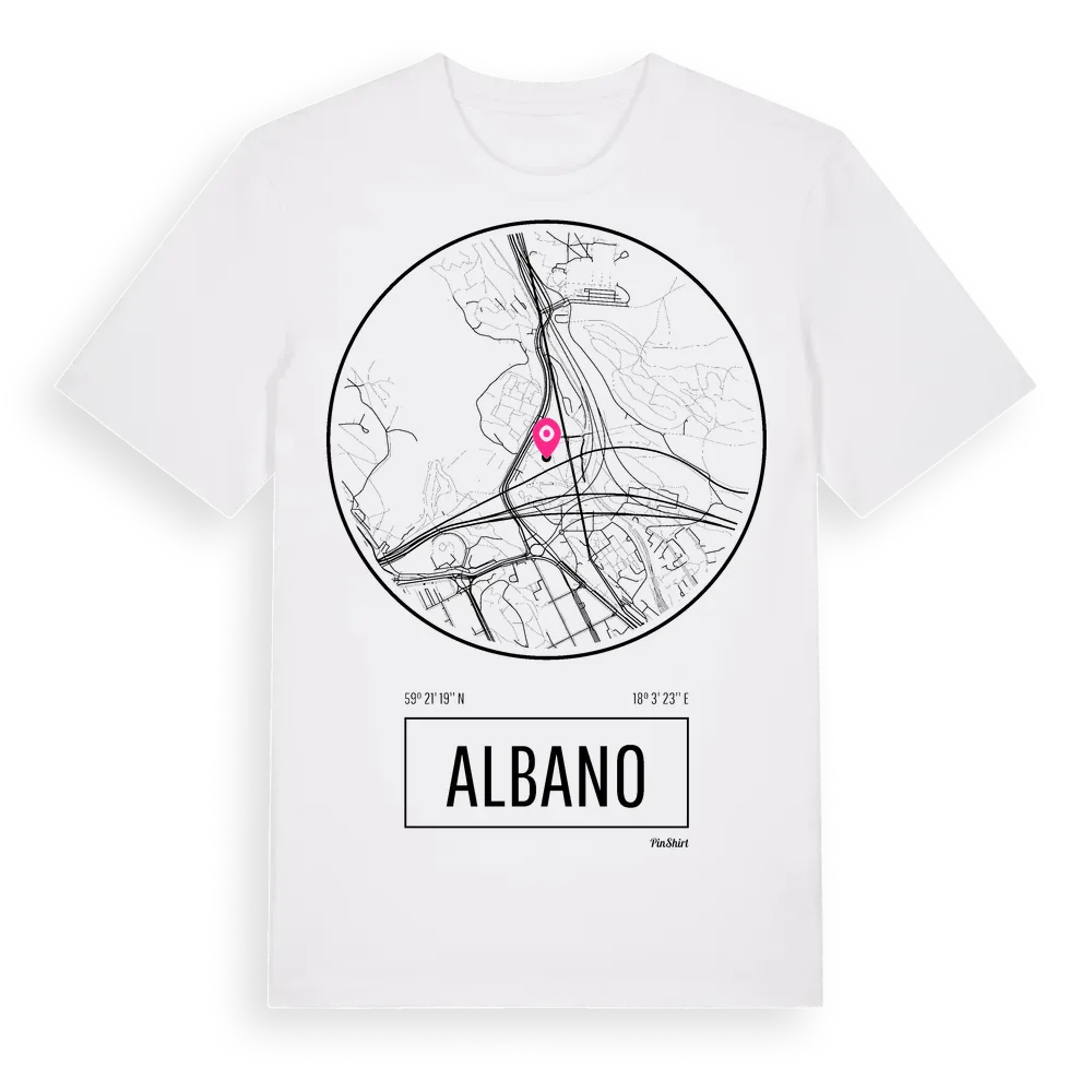 Albano t-shirt är inspirerad av stadsdelen Albano i Stockholms län, Sverige. Tröjan är designad för dig som har en speciell koppling till platsen – oavsett om du bor här, har rötterna här eller bara älskar Albano.