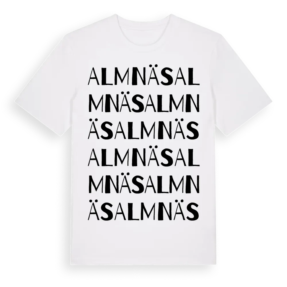 Almnäs ordlek t-shirt är inspirerad av Almnäs i Stockholms län, Sverige. Tröjan är designad för dig som har en speciell koppling till platsen – oavsett om du bor här, har rötterna här eller bara älskar Almnäs.