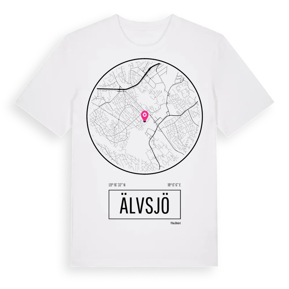 Älvsjö t-shirt är inspirerad av stadsdelen Älvsjö i Stockholms län, Sverige. Tröjan är designad för dig som har en speciell koppling till platsen – oavsett om du bor här, har rötterna här eller bara älskar Älvsjö.