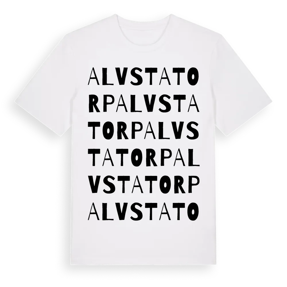 En ordlek byggd på Alvstatorps namn. Subtilt och klurig – ett motiv som bara de som verkligen känner platsen fullt ut förstår. Premium bomull, unisex – från Alvstatorp i Stockholms län.