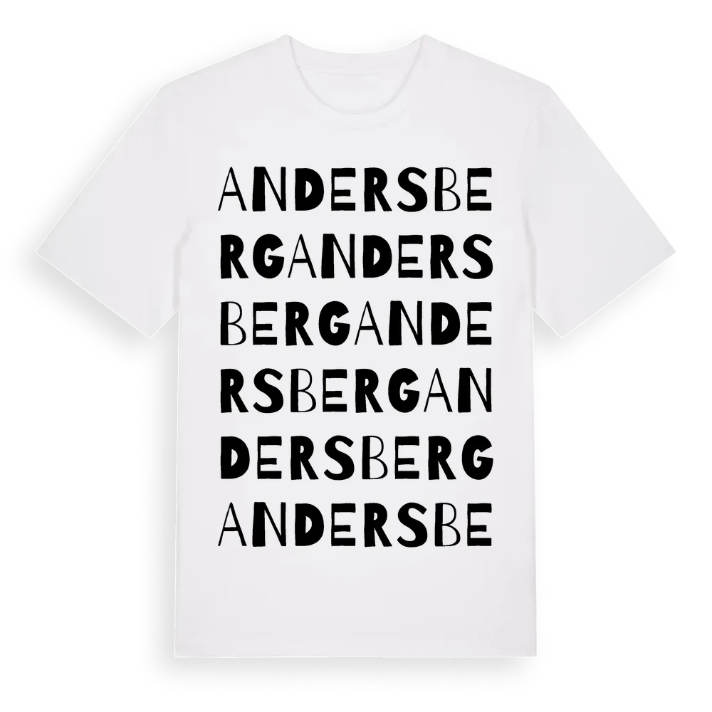 Andersberg ordlek t-shirt är inspirerad av Andersberg i Stockholms län, Sverige. Tröjan är designad för dig som har en speciell koppling till platsen – oavsett om du bor här, har rötterna här eller bara älskar Andersberg.