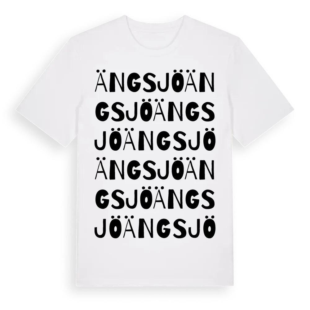 Ängsjö ordlek t-shirt är inspirerad av Ängsjö i Stockholms län, Sverige. Tröjan är designad för dig som har en speciell koppling till platsen – oavsett om du bor här, har rötterna här eller bara älskar Ängsjö.