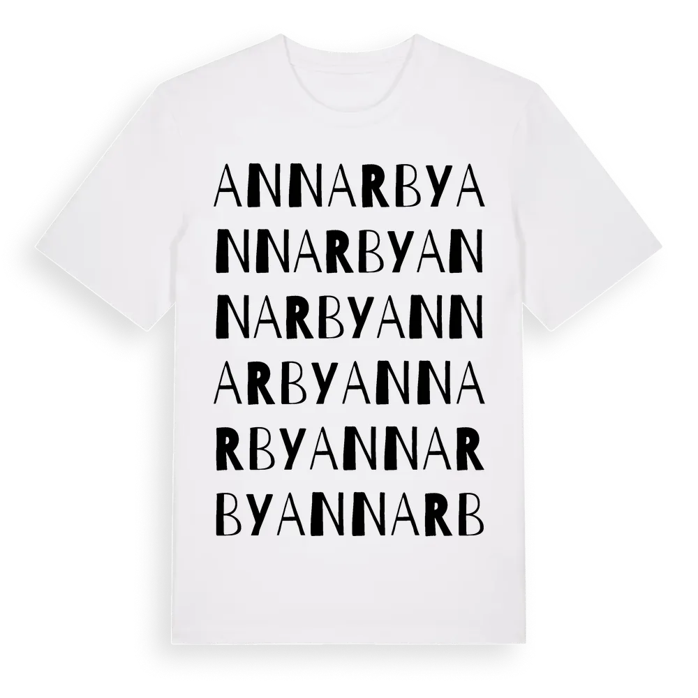 Annarby ordlek t-shirt är inspirerad av byn Annarby i Stockholms län, Sverige. Tröjan är designad för dig som har en speciell koppling till platsen – oavsett om du bor här, har rötterna här eller bara älskar Annarby.