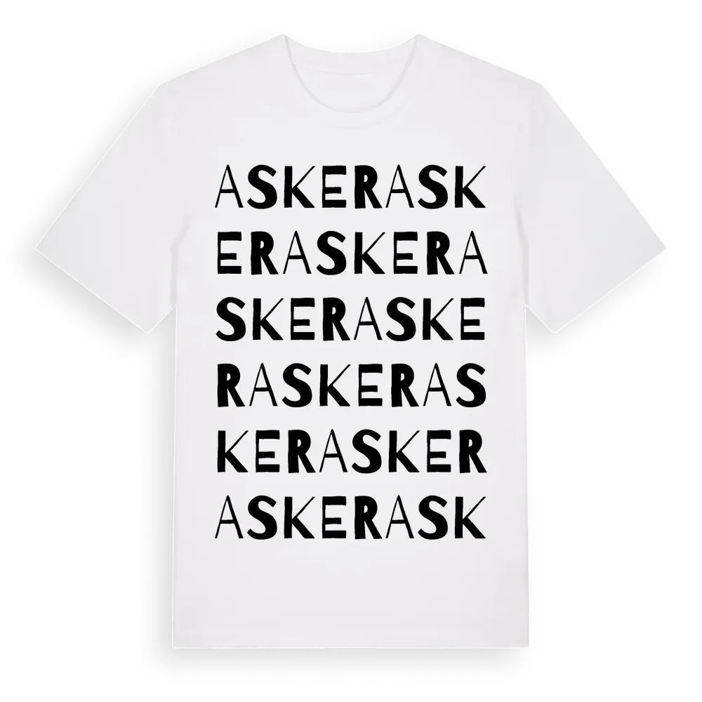 Asker ordlek t-shirt är inspirerad av Asker i Stockholms län, Sverige. Tröjan är designad för dig som har en speciell koppling till platsen – oavsett om du bor här, har rötterna här eller bara älskar Asker.