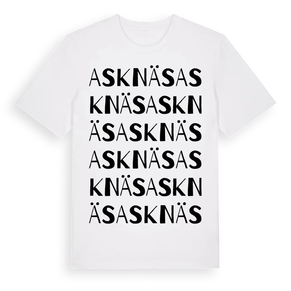 Asknäs ordlek t-shirt är inspirerad av byn Asknäs i Stockholms län, Sverige. Tröjan är designad för dig som har en speciell koppling till platsen – oavsett om du bor här, har rötterna här eller bara älskar Asknäs.