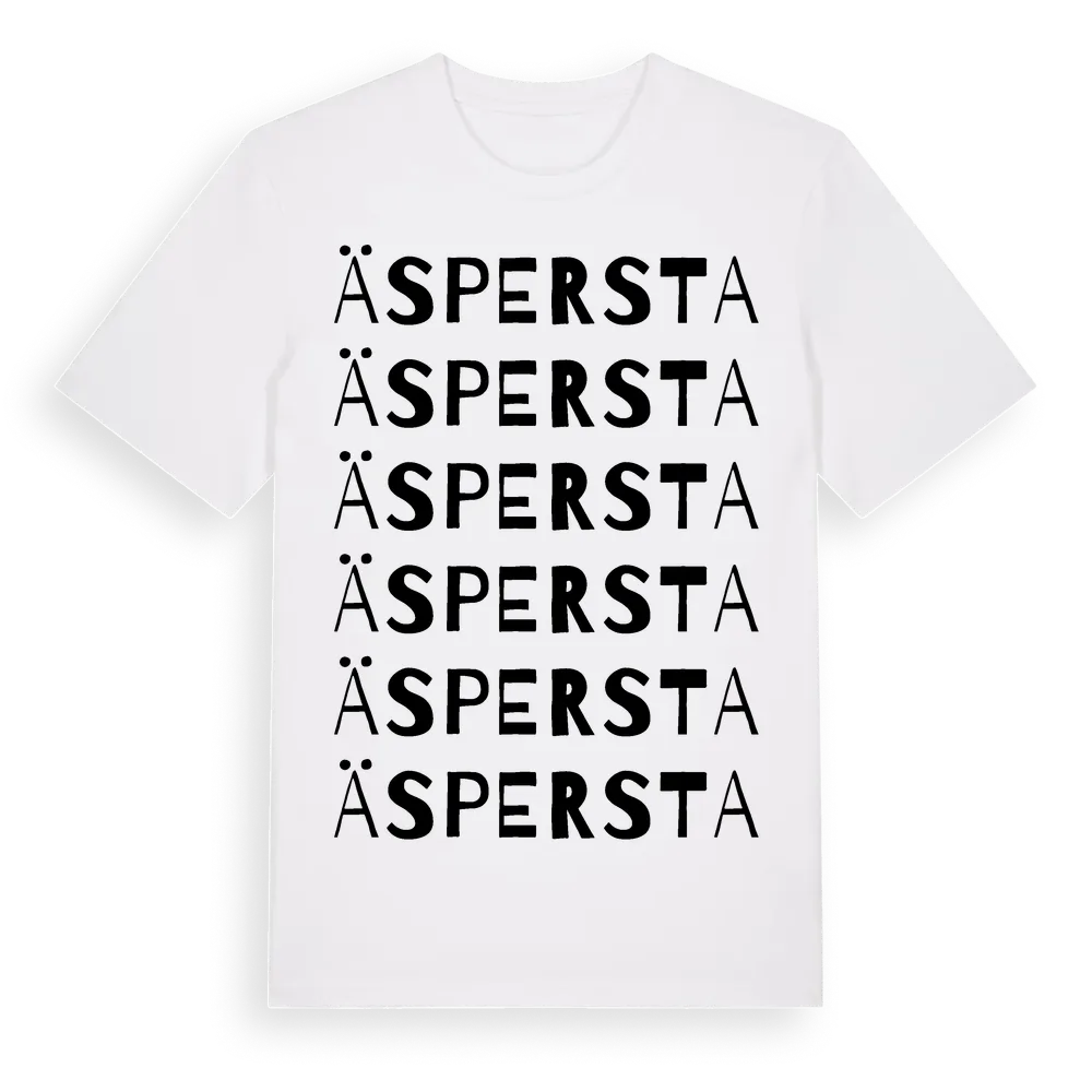 Äspersta ordlek t-shirt är inspirerad av Äspersta i Stockholms län, Sverige. Tröjan är designad för dig som har en speciell koppling till platsen – oavsett om du bor här, har rötterna här eller bara älskar Äspersta.