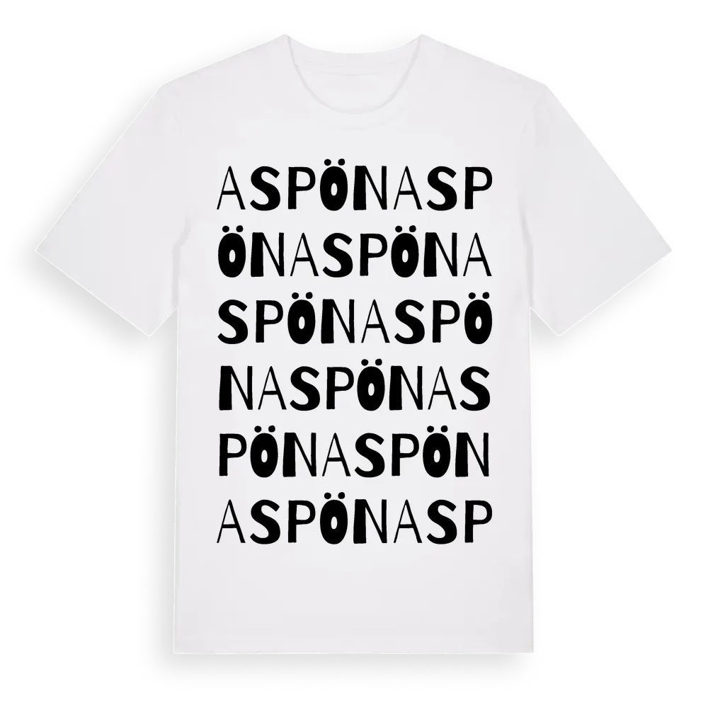 Aspön ordlek t-shirt är inspirerad av ön Aspön i Stockholms län, Sverige. Tröjan är designad för dig som har en speciell koppling till platsen – oavsett om du bor här, har rötterna här eller bara älskar Aspön.