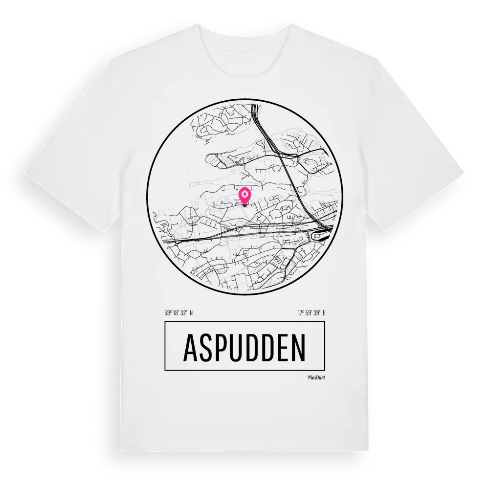 Aspudden t-shirt är inspirerad av stadsdelen Aspudden i Stockholms län, Sverige. Tröjan är designad för dig som har en speciell koppling till platsen – oavsett om du bor här, har rötterna här eller bara älskar Aspudden.