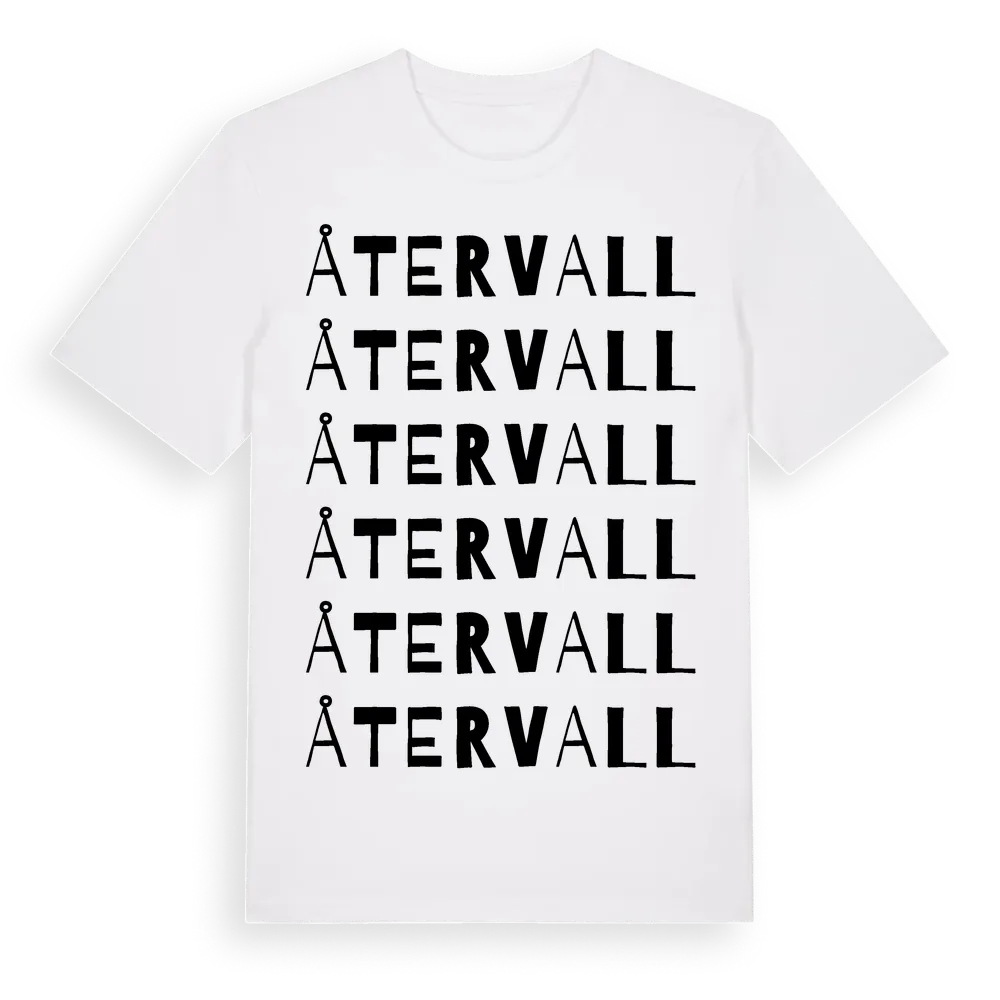 Återvall ordlek t-shirt är inspirerad av byn Återvall i Stockholms län, Sverige. Tröjan är designad för dig som har en speciell koppling till platsen – oavsett om du bor här, har rötterna här eller bara älskar Återvall.