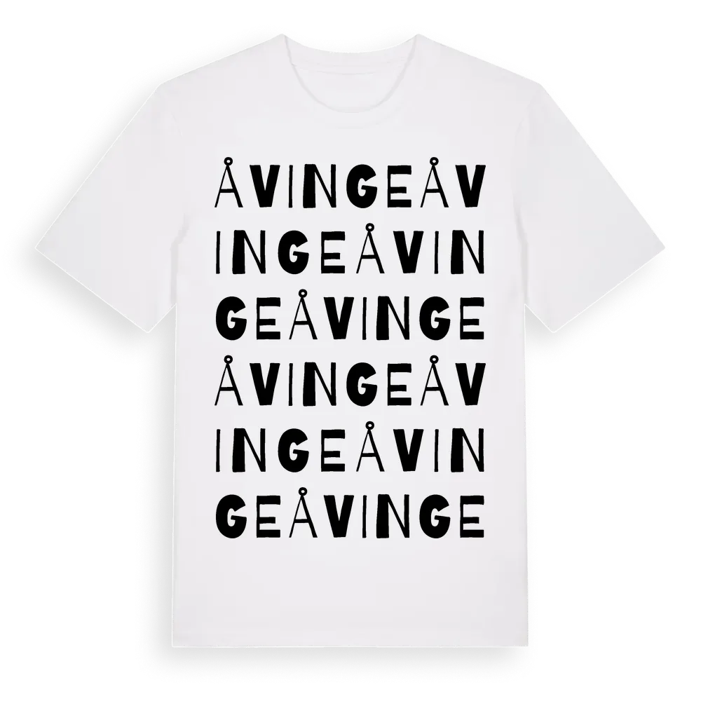 Åvinge ordlek t-shirt är inspirerad av byn Åvinge i Stockholms län, Sverige. Tröjan är designad för dig som har en speciell koppling till platsen – oavsett om du bor här, har rötterna här eller bara älskar Åvinge.