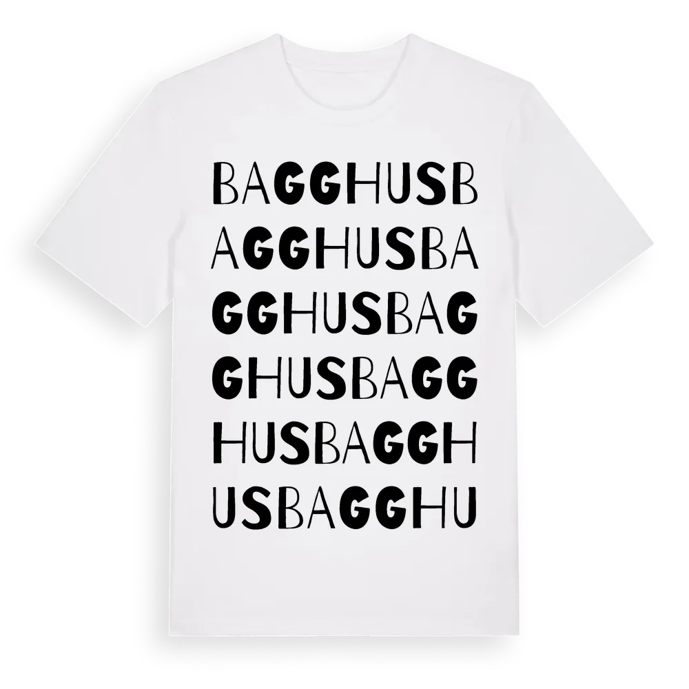 Bagghus ordlek t-shirt är inspirerad av Bagghus i Stockholms län, Sverige. Tröjan är designad för dig som har en speciell koppling till platsen – oavsett om du bor här, har rötterna här eller bara älskar Bagghus.