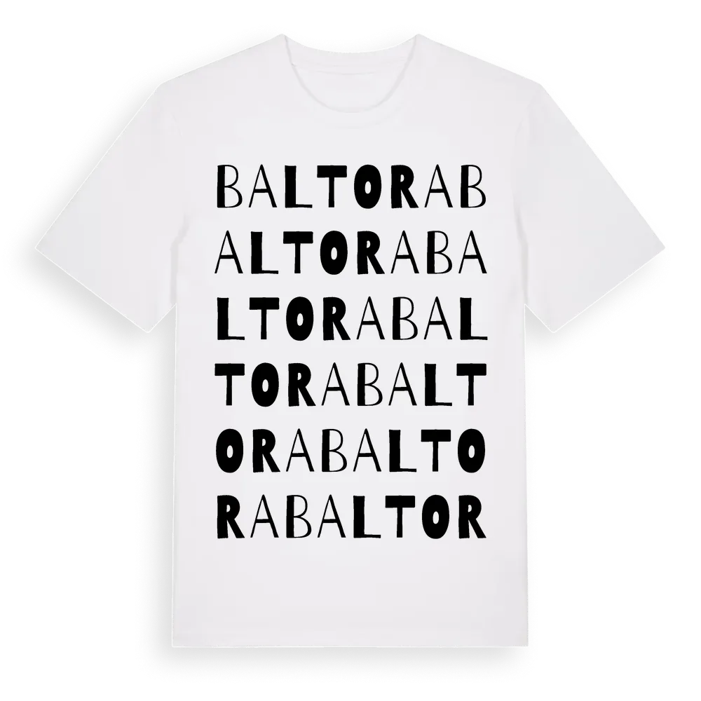 En ordlek byggd på Baltoras namn. Subtilt och klurig – ett motiv som bara de som verkligen känner platsen fullt ut förstår. Premium bomull, unisex – från stadsdelen Baltora i Stockholms län.
