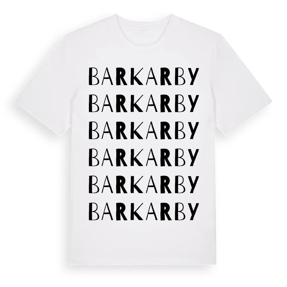 En ordlek byggd på Barkarbys namn. Subtilt och klurig – ett motiv som bara de som verkligen känner platsen fullt ut förstår. Premium bomull, unisex – från stadsdelen Barkarby i Stockholms län.