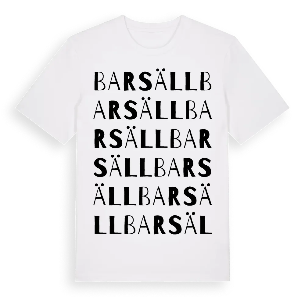 Barsäll ordlek t-shirt är inspirerad av Barsäll i Stockholms län, Sverige. Tröjan är designad för dig som har en speciell koppling till platsen – oavsett om du bor här, har rötterna här eller bara älskar Barsäll.