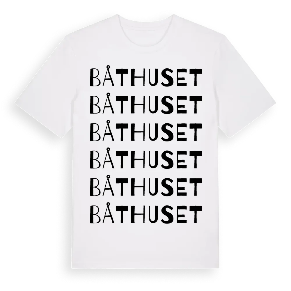 Båthuset ordlek t-shirt är inspirerad av byn Båthuset i Stockholms län, Sverige. Tröjan är designad för dig som har en speciell koppling till platsen – oavsett om du bor här, har rötterna här eller bara älskar Båthuset.