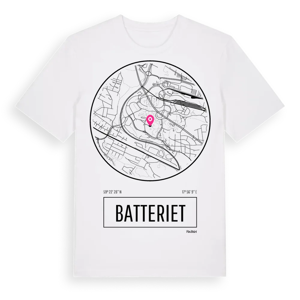 Batteriet t-shirt är inspirerad av stadsdelen Batteriet i Stockholms län, Sverige. Tröjan är designad för dig som har en speciell koppling till platsen – oavsett om du bor här, har rötterna här eller bara älskar Batteriet.
