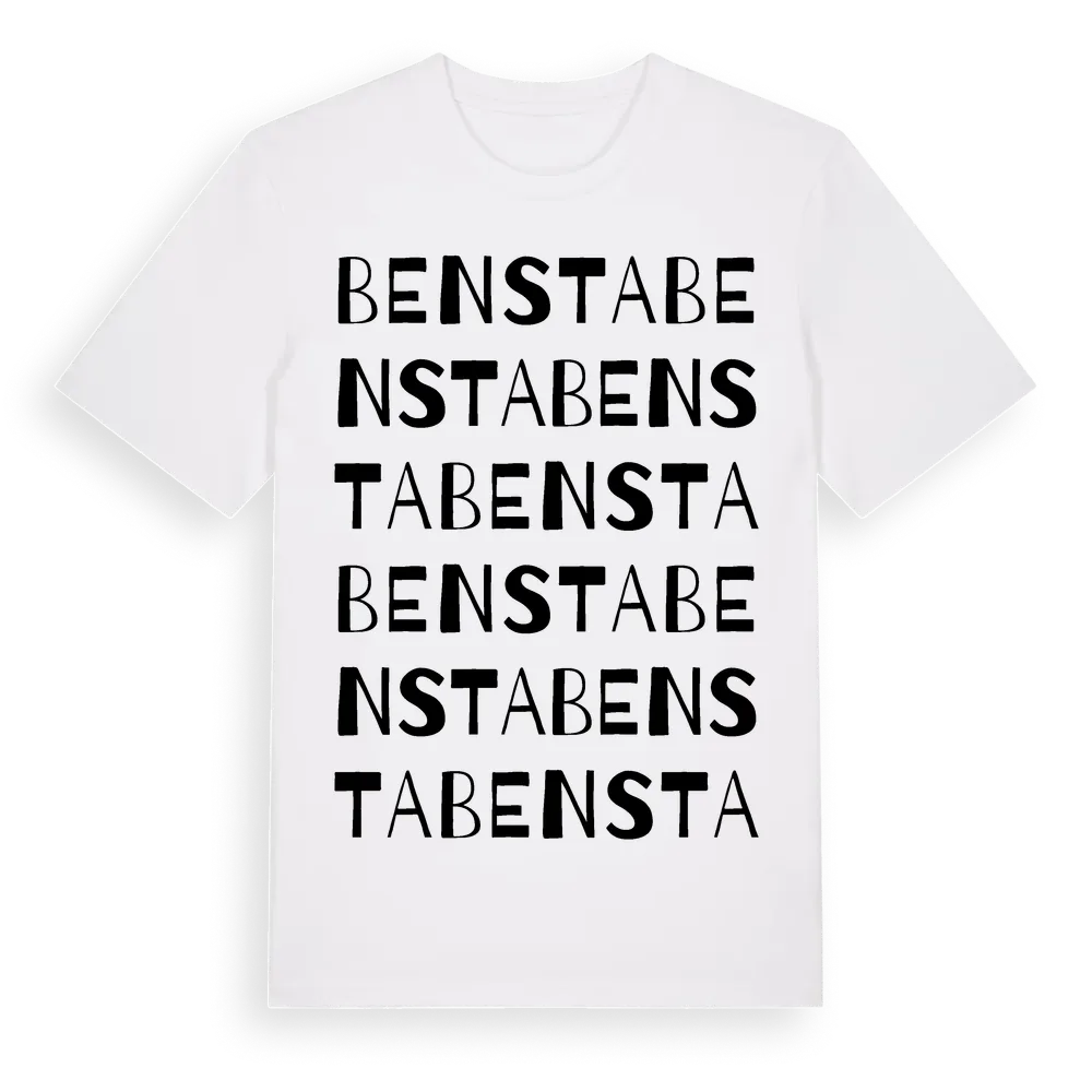 En ordlek byggd på Benstas namn. Subtilt och klurig – ett motiv som bara de som verkligen känner platsen fullt ut förstår. Premium bomull, unisex – från Bensta i Stockholms län.