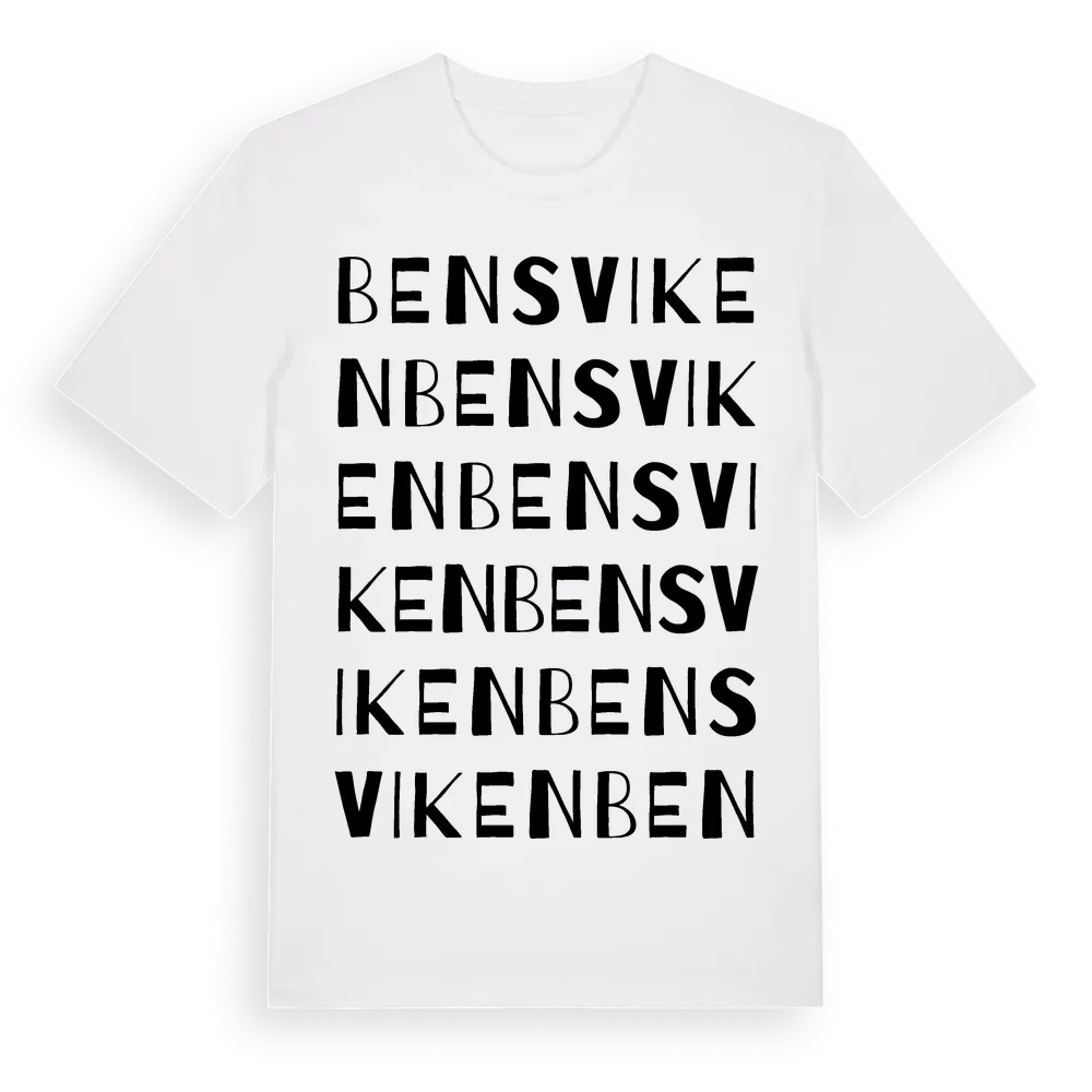 Bensviken ordlek t-shirt är inspirerad av Bensviken i Stockholms län, Sverige. Tröjan är designad för dig som har en speciell koppling till platsen – oavsett om du bor här, har rötterna här eller bara älskar Bensviken.