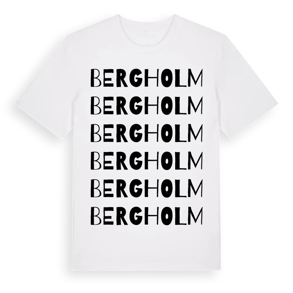 Bergholm ordlek t-shirt är inspirerad av Bergholm i Stockholms län, Sverige. Tröjan är designad för dig som har en speciell koppling till platsen – oavsett om du bor här, har rötterna här eller bara älskar Bergholm.