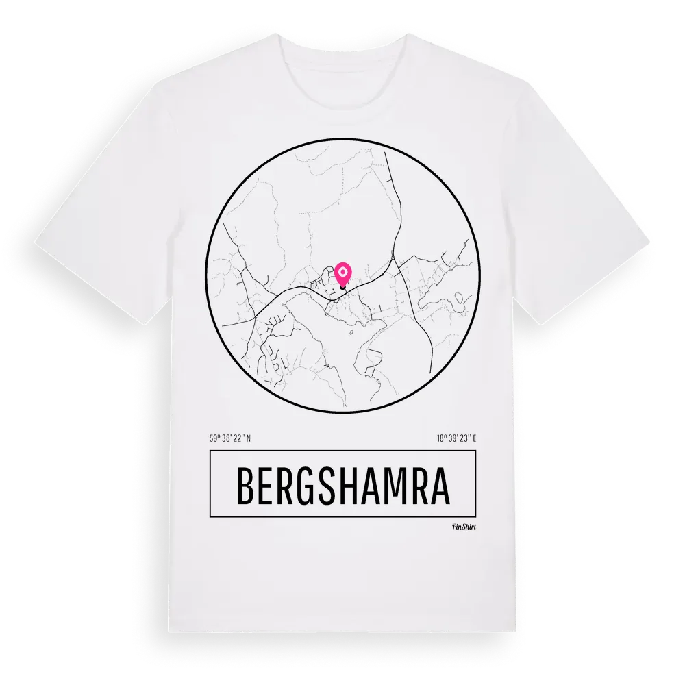 Bergshamra t-shirt är inspirerad av byn Bergshamra i Stockholms län, Sverige. Tröjan är designad för dig som har en speciell koppling till platsen – oavsett om du bor här, har rötterna här eller bara älskar Bergshamra.