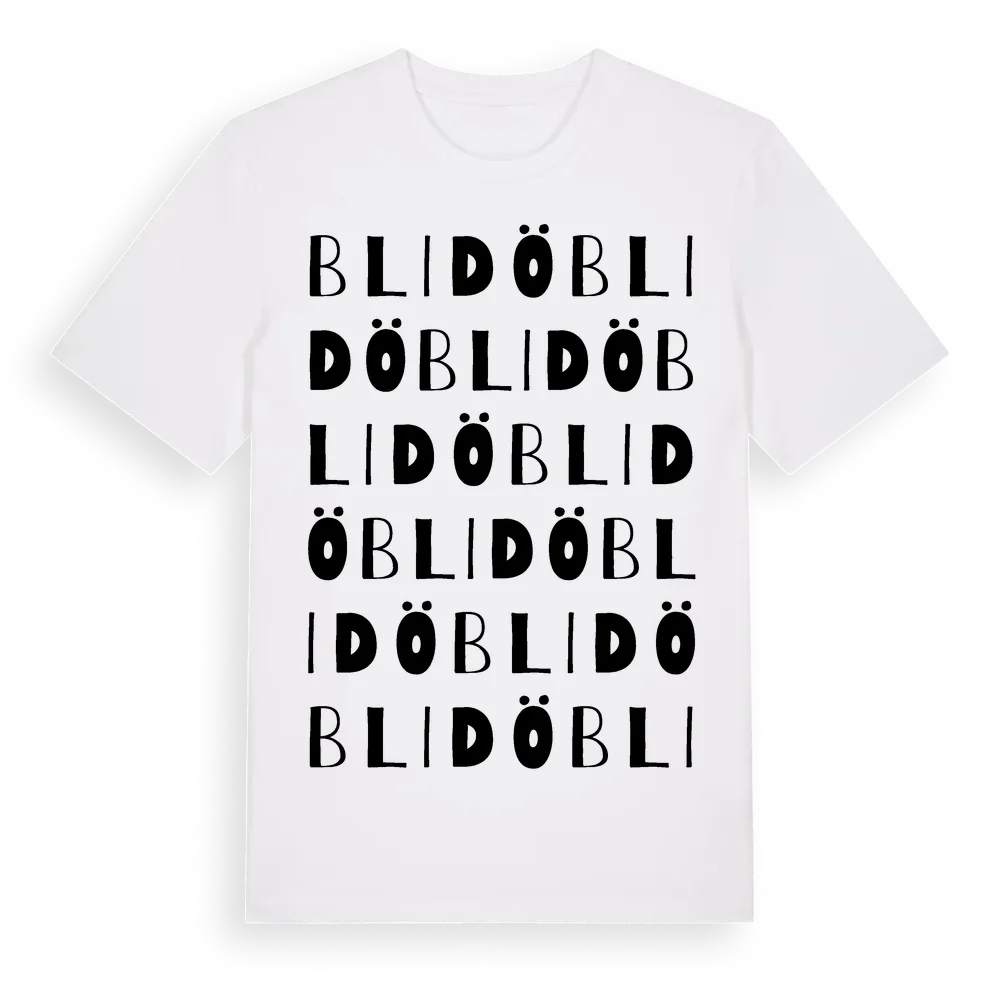 En ordlek byggd på Blidös namn. Subtilt och klurig – ett motiv som bara de som verkligen känner platsen fullt ut förstår. Premium bomull, unisex – från ön Blidö i Stockholms län.