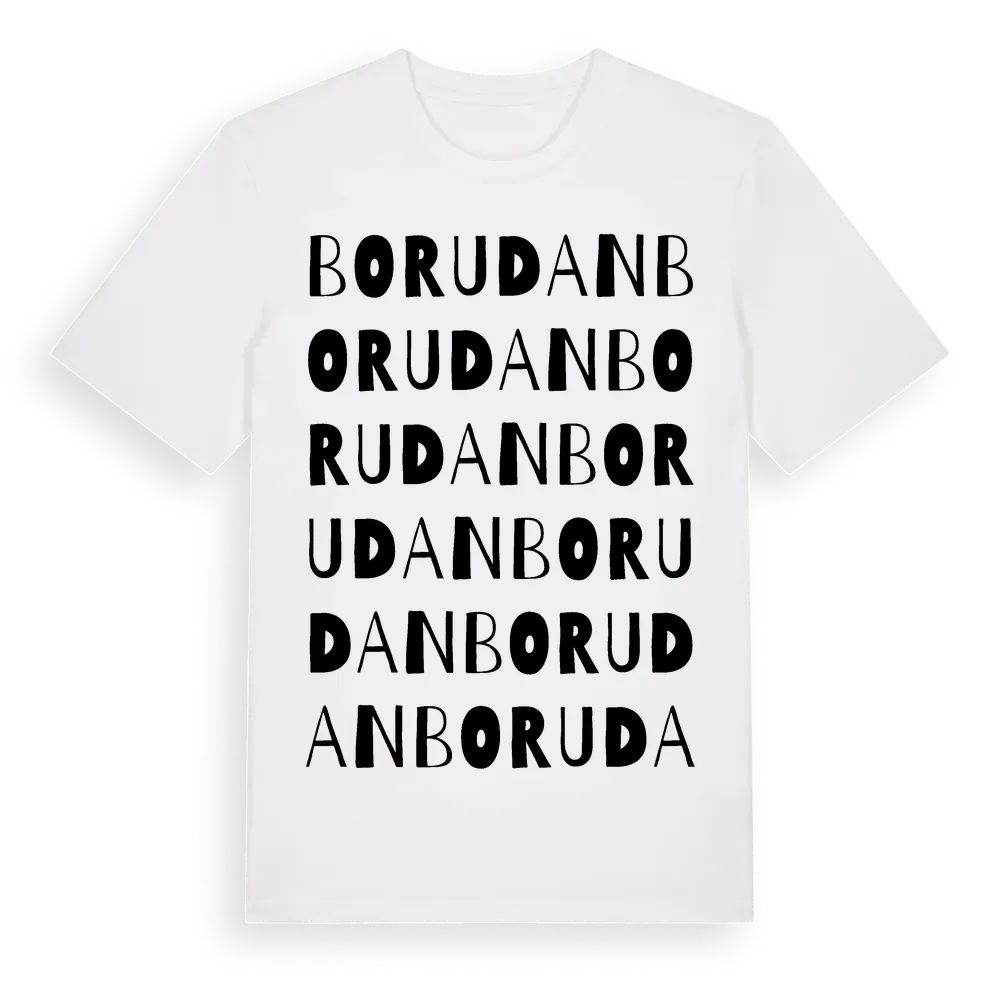 Borudan ordlek t-shirt är inspirerad av Borudan i Stockholms län, Sverige. Tröjan är designad för dig som har en speciell koppling till platsen – oavsett om du bor här, har rötterna här eller bara älskar Borudan.
